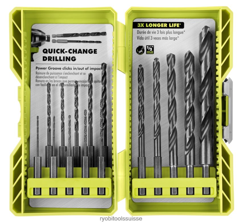 ryobi présente le jeu de 15 forets à tige hexagonale en oxyde noir. cet assortiment de forets est parfait pour une variété de matériaux, notamment les surfaces en bois, en métal et en plastique. les embouts sont fabriqués en acier rapide avec une finition en oxyde noir pour offrir une durabilité supérieure et une durée de vie 3 fois plus longue. une autre caractéristique de ces forets est la pointe divisée à 135 degrés pour percer au contact et empêcher votre foret de marcher. la conception hexagonale de 1/4″ offre une prise sûre dans le mandrin de perçage pour éviter que le foret ne glisse. Les conceptions hexagonales de 1/4″ permettent un retrait facile de l’embout pour un changement rapide entre le foret et les embouts d’entraînement. le boîtier compact pour un accès facile aux embouts et une mobilité. ce large assortiment, allant de 1/16″ à 1/2″, garantissant un foret pour tous les besoins de votre projet. cet ensemble comprendudes (2) foret à oxyde noir de 1/16″, (1) foret à oxyde noir de 5/64″, (1) foret à oxyde noir de 3/32″, (1) foret à oxyde noir de 7/64″, ( 2) foret à oxyde noir de 1/8″, (1) foret à oxyde noir de 9/64″, (1) foret à oxyde noir de 5/32″, (1) foret à oxyde noir de 3/16″, (1) Foret à oxyde noir de 7/32″, (1) foret à oxyde noir de 1/4″, (1) foret à oxyde noir de 5/16″, (1) foret à oxyde noir de 3/8″, et (1) 1 /2″ foret à oxyde noir