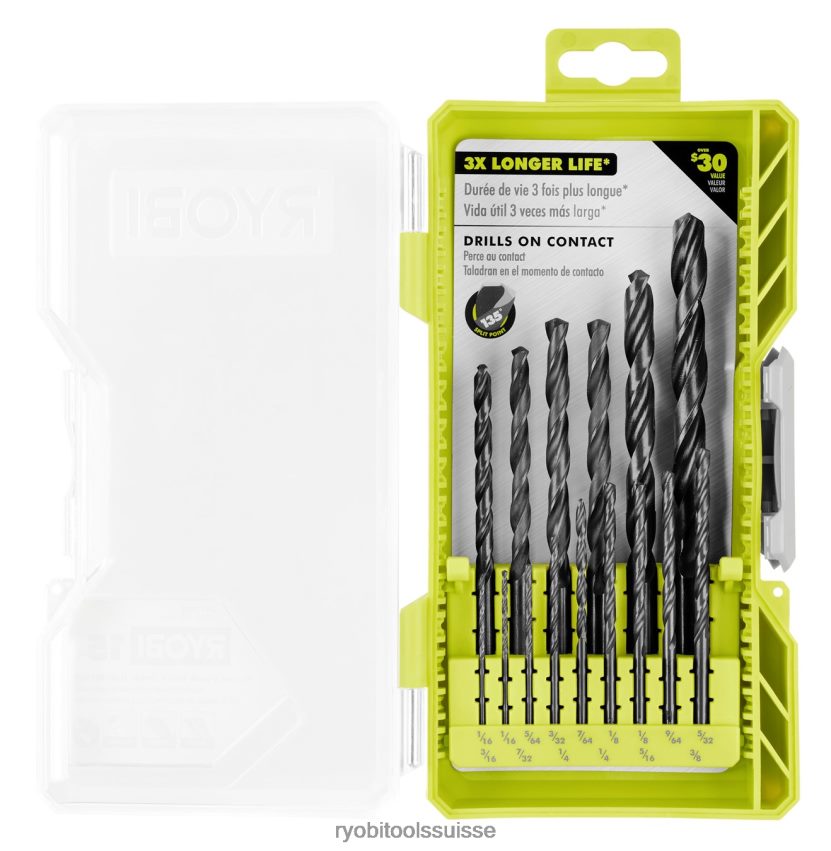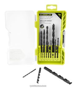 ryobi présente le jeu de forets à oxyde noir à tige ronde de 15 pièces. cet assortiment de forets est parfait pour les matériaux tels que les surfaces en bois, en métal et en plastique. les embouts sont fabriqués en acier rapide avec une finition en oxyde noir pour offrir une durabilité supérieure et une durée de vie 3 fois plus longue. une autre caractéristique de ces forets est la pointe divisée à 135 degrés pour percer au contact et empêcher votre foret de marcher. le couvercle transparent du boîtier offre une visibilité pour une meilleure facilité d’accès. cet assortiment comprend des embouts allant de 1/16″ à 3/8″ pour tous vos besoins de bricolage. cet ensemble comprend (2) foret à oxyde noir de 1/16″, (1) foret à oxyde noir de 5/64″, (1) foret à oxyde noir de 3/32″, (1) foret à oxyde noir de 7/64″. , (2) foret à oxyde noir de 1/8″, (1) foret à oxyde noir de 9/64″, (1) foret à oxyde noir de 5/32″.L, (1) foret à oxyde noir de 3/16″, (1) foret à oxyde noir de 7/32″, (2) foret à oxyde noir de 1/4″, (1) foret à oxyde noir de 5/16″. , (1) foret à oxyde noir de 3/8″.