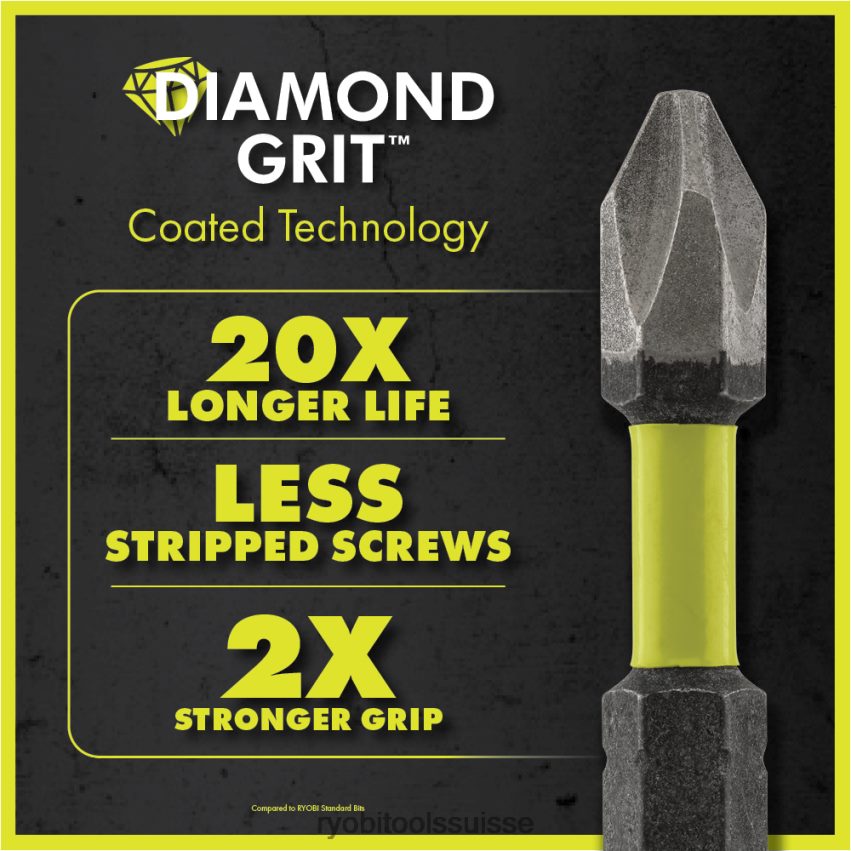 Complétez votre collection d’outils avec la technologie de revêtement Ryobi Diamond Grit. ces 22 pièces. Les embouts à percussion de 1″ comprennent des embouts Phillips à impact diamantés et des embouts à impact supplémentaires. La technologie de revêtement en grain de diamant offre une couche de protection supplémentaire pour une durée de vie 20 fois plus longue, améliorant la durabilité de l’embout dans toutes les applications de vissage Phillips. Le grain de diamant produit un 2x adhérence plus forte qui permet une forte tenue avant l’enfoncement et un positionnement de la fixation dans l’embout. Cette adhérence supplémentaire crée une expérience similaire à celle d’un embout chargé magnétiquement, mais avec une tenue plus sûre. La technologie de revêtement en grains de diamant s’accroche à l’attache Phillips. lors des applications de conduite pour un meilleur ajustement afin d’éviter le dénudage de la tête Phillips.offre une grande variété de solutions de conduite qui peuvent répondre aux besoins des professionnels et des bricoleurs. ces 22 pièces. Les embouts à percussion de 1″ sont compatibles avec les perceuses et les visseuses à percussion standard et comprennent (1) un porte-embout à impact magnétique, (1) un diamant ph1 de 1″, (3) un diamant ph2 de 1″, (2) un diamant ph3 de 1″, (1 ) t15, (1) t20, (3) t25, (1) hex 1/8″, (1) hex 3/16″, (1) hex 1/4″, (2) sl8, (1) sl10, (1) sq1, (2) sq2 et (1) sq3.
