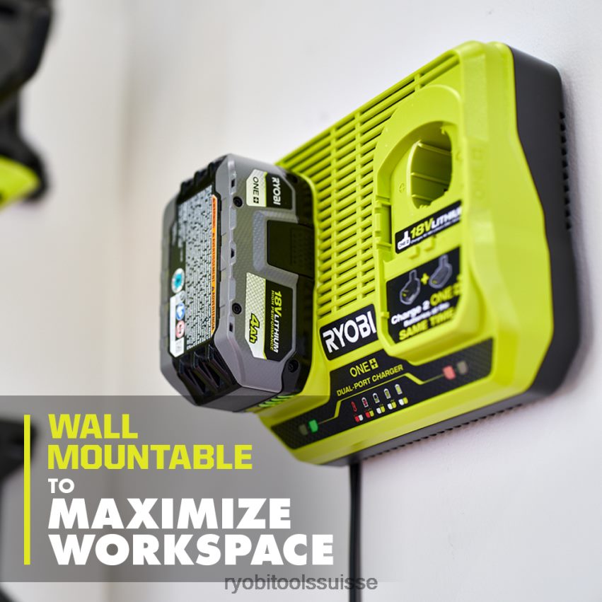 - chargeur : chargez et entretenez jusqu’à deux batteries Ryobi 18v one+ en même temps