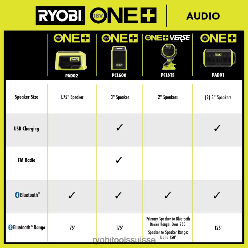 éclairage style de vie et loisirs ch RYOBI Haut-parleur 18v ​​one+ avec technologie sans fil Bluetooth 24XXL4463