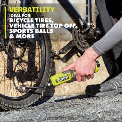 ryobi présente le kit de gonfleur haute pression au lithium USB. ce gonfleur haute pression au lithium USB est la solution idéale pour les pneus de vélo, le complément des pneus de véhicule et les ballons de sport pour continuer votre journée. utilisez le manomètre numérique pour une lecture facile des mesures et un remplissage précis. la lampe de travail LED intégrée éclaire l’application, quel que soit l’environnement. avec rangement intégré, apportez les accessoires inclus et un tuyau de 6″ pour un gonflage en déplacement. ce produit est doté d’un indicateur LED pour signaler lorsque la batterie est chargée (vert) ou lorsque la batterie est faible (rouge) pendant son utilisation. l’usb Le kit de gonfleur haute pression au lithium fait partie du système USB au lithium qui fournit des solutions compactes, portables et rechargeables pour une alimentation et une productivité sans fil. Ce gonfleur haute pression au lithium USB est de retour.d par la garantie du fabricant Ryobi de 2 ans et comprend (1) gonfleur haute pression au lithium USB FVIF51, (1) batterie USB au lithium 2 Ah FVB01, un câble USB, une aiguille de sport, un adaptateur de valve Presta et des manuels d’utilisation.