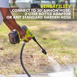 - se connecte facilement à un tuyau de siphon, un adaptateur de bouteille de 2 l ou un tuyau d’arrosage
