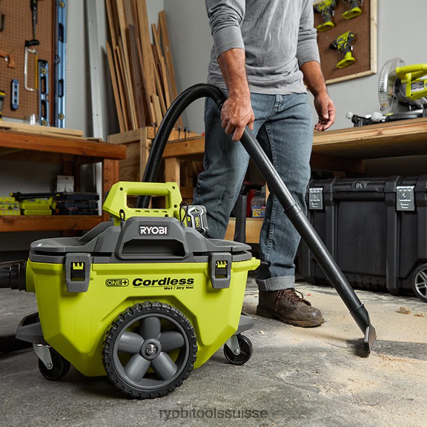 présentation du nouveau ryobi one+ 6 gal. aspirateur sec/humide. désormais, vous pouvez profiter des performances avec fil avec la commodité du sans fil. cet aspirateur a un puissant 80 cfm. la conception de roue multi-tailles sans pointe et la mobilité à 360 degrés maintiennent votre aspirateur équilibré lorsque vous roulez sur des cordons et des seuils. Le rangement intégré des accessoires contient facilement votre suceur plat, votre suceur de sol et vos rallonges, tandis que le support de tuyau offre une solution simple pour ranger votre tuyau lorsqu’il n’est pas utilisé. plusieurs poignées de transport permettent un transport facile, et le dessus amovible permet de vider la poussière, les débris et les liquides rapidement et sans gâchis. la conception compacte permet un stockage peu encombrant lorsqu’il n’est pas utilisé. Mieux encore, l’aspirateur eau/sec Ryobi One+ fait partie de la famille Ryobi One+ de plus de 100 outils.