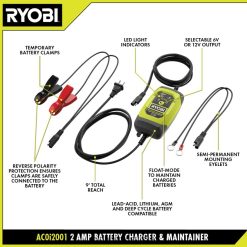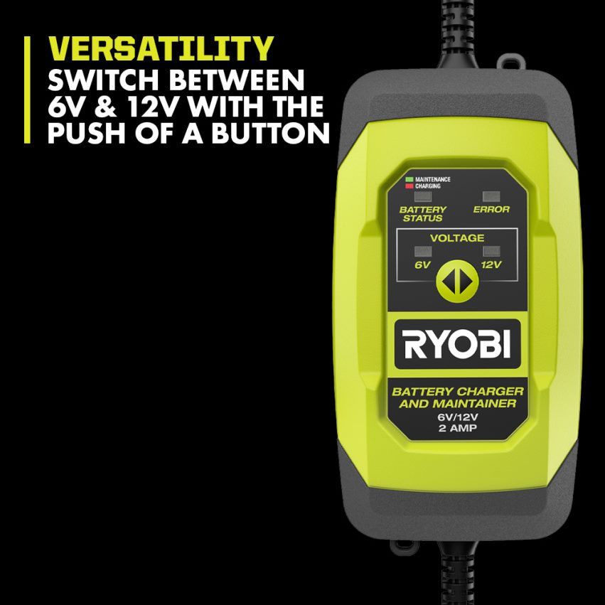 Le chargeur et mainteneur de batterie Ryobi 2 A maintient la batterie de votre véhicule motorisé à un niveau de charge maximal, permettant à votre batterie de rester inactive sans craindre qu’elle soit morte ou endommagée lorsque vous en avez besoin. il. il est idéal pour une utilisation sur tous les véhicules que vous n’utilisez pas quotidiennement, tels que les véhicules récréatifs, les motos et les bateaux. pour une utilisation sur de longues périodes, le mainteneur dispose d’une fonction de mode flottant qui charge la batterie à des niveaux optimaux, interrompt automatiquement la charge pour surveiller les niveaux de la batterie et ne reprend la charge que lorsque la batterie a besoin d’une charge supplémentaire. cela protège la batterie afin que vous n’ayez jamais à vous soucier d’une surcharge ou d’une sous-charge. choisissez entre des œillets de montage semi-permanents ou utilisez les pinces de batterie pour une installation rapide et facile. il est compatible avec le plomb, lBatteries au lithium, agm et à décharge profonde 6 V et 12 V, passant facilement de 6 V à 12 V en appuyant simplement sur un bouton. les voyants LED affichent l’état de la batterie, les avertissements d’inversion de polarité et vous informe si vous avez une batterie défectueuse. la protection contre l’inversion de polarité garantit que les pinces sont correctement connectées à la batterie, garantissant une utilisation sûre. pour plus de commodité, ce chargeur et mainteneur de batterie dispose d’une portée totale de cordon de 9′. le chargeur et mainteneur de batterie 2 A bénéficie de la garantie fabricant Ryobi de 3 ans et comprend le chargeur et mainteneur de batterie 6 V/12 V 2 A, des pinces de batterie, des œillets de montage semi-permanents et un manuel d’utilisation.