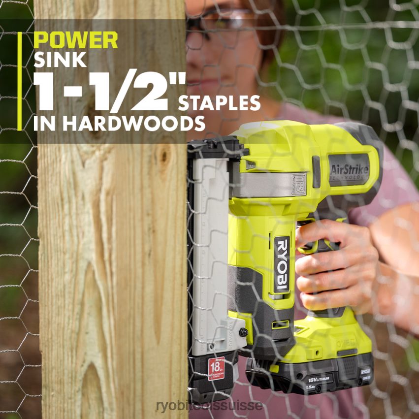 développez votre système Ryobi 18v one+ avec l’agrafeuse à couronne étroite sans fil 18v one+ airstrike de calibre 18 (outil uniquement). cette agrafeuse à couronne est dotée de la technologie Airstrike, qui élimine le besoin de compresseurs bruyants, de tuyaux encombrants ou de cartouches de gaz coûteuses. cela signifie une installation plus rapide et une maniabilité facile sur le chantier. l’agrafeuse à couronne étroite Ryobi P361 est capable d’enfoncer des agrafes jusqu’à 1-1/2″ dans les bois durs. De plus, c’est l’agrafeuse à couronne étroite sans fil la plus légère de sa catégorie, ce qui aide à prévenir la fatigue de l’utilisateur. Cette agrafeuse permet des périodes prolongées d’utilisation continue. fonctionne en enfonçant jusqu’à 1 700 agrafes par charge. il offre également une lame d’entraînement 26 % plus petite pour une qualité d’entraînement supérieure, par rapport au p360. il y a un réglage de la profondeur d’entraînement sans outilCela permet un réglage correct des têtes de clous. Idéale pour les travaux de treillis et la sous-couche de sol, cette agrafeuse à couronne est le complément parfait à toute collection d’outils de menuisier ou de bricoleur. cet outil bénéficie de la garantie fabricant Ryobi de 3 ans et comprend une batterie de 1,5 Ah, un chargeur de 18 V et un manuel d’utilisation.