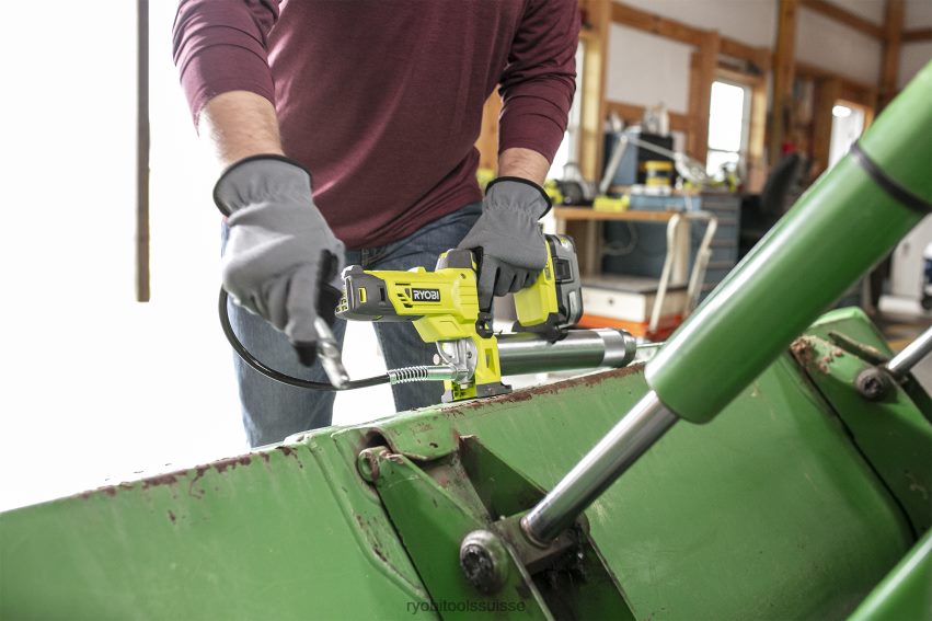 ryobi présente le kit de pistolet graisseur 18 V One+ avec batterie 2,0 Ah et chargeur 18 V. il a une pression maximale de 10 000 psi et un débit maximum jusqu’à 7,5 oz/minute. la lampe de travail à DEL intégrée aide à éclairer l’espace de travail, tandis que le tuyau flexible de 30 po permet de l’atteindre. la tige du piston a des marquages qui permettent de voir exactement la quantité de graisse restante dans le tube et la vanne de purge d’air amorce la pompe et réduit les poches d’air. n’ayez plus peur de l’autonomie : pompez jusqu’à 19 cartouches de graisse par charge lorsque vous utilisez une batterie lithium+ p108 4,0 Ah (non incluse). la batterie et le chargeur inclus sont compatibles avec tous les outils Ryobi 18v one+. Bénéficie de la garantie fabricant Ryobi de 3 ans, du pistolet graisseur 18 V One+, d’une batterie de 2,0 Ah, d’un chargeur 18 V et d’un manuel d’utilisation.