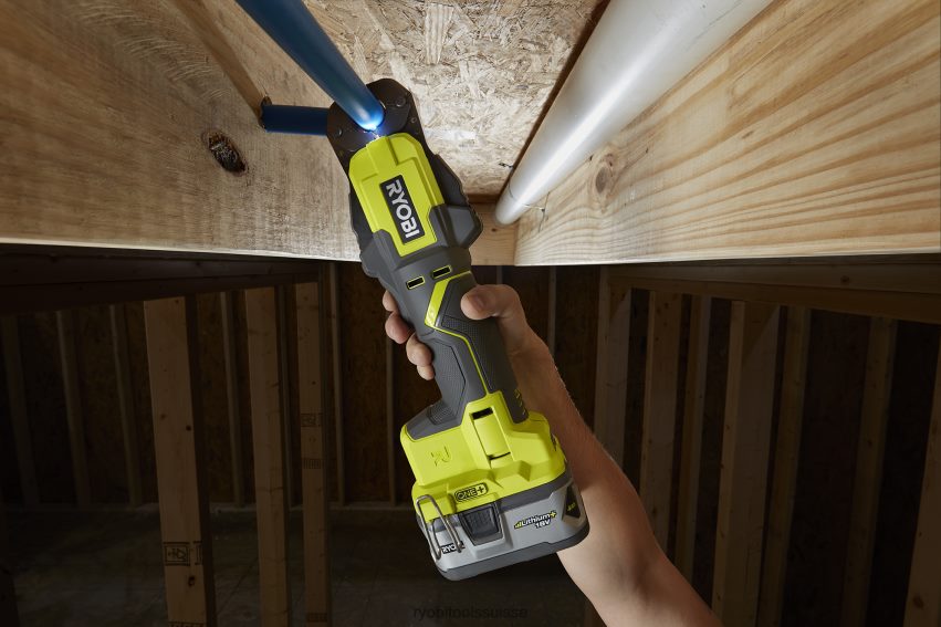 ryobi présente l’outil de presse à bagues à sertir one+ pex. avec 320 sertissages par charge et une opération de sertissage facile à une main, l’outil de presse à bagues à sertir élimine la fatigue de l’utilisateur et vous permet d’effectuer le travail plus rapidement. le cycle de sertissage prend moins de 5 secondes avec une lumière LED pour indiquer la fin. l’outil de presse à bague à sertir s’adapte à toutes les tailles pex de 3/8″, _”, ” et 1″. les mâchoires de l’outil s’adaptent à un anneau de 1″ et des inserts de matrice pour les anneaux _” et ” sont inclus (insert de 3/8″ non inclus) ainsi qu’une jauge go/no go pour garantir un sertissage correct.