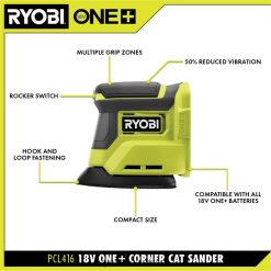 outils électroportatifs ch RYOBI Kit de ponceuse de finition pour chat d’angle 18 V One+ 24XXL4141