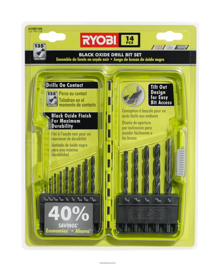 accessoires ch RYOBI 14 pièces. jeu de forets à oxyde noir 24XXL4792