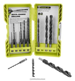 ryobi présente le jeu de 15 forets à tige hexagonale en oxyde noir. cet assortiment de forets est parfait pour une variété de matériaux, notamment les surfaces en bois, en métal et en plastique. les embouts sont fabriqués en acier rapide avec une finition en oxyde noir pour offrir une durabilité supérieure et une durée de vie 3 fois plus longue. une autre caractéristique de ces forets est la pointe divisée à 135 degrés pour percer au contact et empêcher votre foret de marcher. la conception hexagonale de 1/4″ offre une prise sûre dans le mandrin de perçage pour éviter que le foret ne glisse. Les conceptions hexagonales de 1/4″ permettent un retrait facile de l’embout pour un changement rapide entre le foret et les embouts d’entraînement. le boîtier compact pour un accès facile aux embouts et une mobilité. ce large assortiment, allant de 1/16″ à 1/2″, garantissant un foret pour tous les besoins de votre projet. cet ensemble comprendudes (2) foret à oxyde noir de 1/16″, (1) foret à oxyde noir de 5/64″, (1) foret à oxyde noir de 3/32″, (1) foret à oxyde noir de 7/64″, ( 2) foret à oxyde noir de 1/8″, (1) foret à oxyde noir de 9/64″, (1) foret à oxyde noir de 5/32″, (1) foret à oxyde noir de 3/16″, (1) Foret à oxyde noir de 7/32″, (1) foret à oxyde noir de 1/4″, (1) foret à oxyde noir de 5/16″, (1) foret à oxyde noir de 3/8″, et (1) 1 /2″ foret à oxyde noir