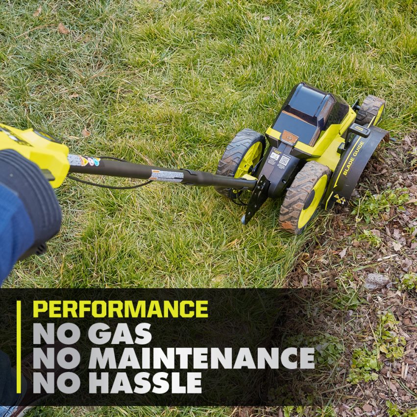 Entrez dans le système Ryobi 40 V avec le kit de coupe-bordure 9” sans balais 40 V HP. La technologie 40 V HP offre la puissance du gaz, faisant de cette déligneuse un véritable remplacement du gaz sans entretien ni tracas. La technologie 40 V HP combine un moteur sans balais, une électronique avancée et une technologie au lithium haute performance pour alimenter les tranchées les plus difficiles autour de vos allées, trottoirs et parterres de fleurs, avec jusqu’à 49 minutes d’autonomie. il est équipé d’une conception à 3 roues, d’un guide-bordure et d’un indicateur de lame pour offrir des bords plus propres et plus précis. personnalisez facilement la profondeur de vos coupes de 0,5” à 2,0” grâce au réglage de la profondeur à 4 positions. cette coupe-bordure est dotée d’une roue arrière réglable pour faciliter le contournement des bordures et d’une poignée rotative pour que vous puissiez marcher confortablement à côté ou derrière elle. quand il est temps de nettoyerDans votre coupe-bordure, éliminez sans effort toute accumulation grâce au nettoyeur de débris intégré et pour un changement de lame rapide et facile, utilisez le verrouillage de la broche. une fois que vous avez terminé le travail, inclinez les poignées pour qu’elles affleurent la lame et les roues pour un rangement compact. Mieux encore, elle fait partie du système Ryobi 40 V où n’importe quelle batterie 40 V fonctionne avec n’importe quel produit 40 V. ce kit de coupe-bordure sans balais 40 V HP de 9 pouces est couvert par la garantie du fabricant sur les outils Ryobi de 5 ans, la garantie de la batterie du fabricant de 3 ans et comprend un coupe-bordure sans balais Ry40706 de 9 pouces HP de 40 V, une batterie au lithium op40404 de 40 V 4 Ah, un chargeur rapide OP408 de 40 V et une lame. clé et manuels d’utilisation.