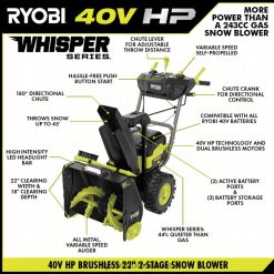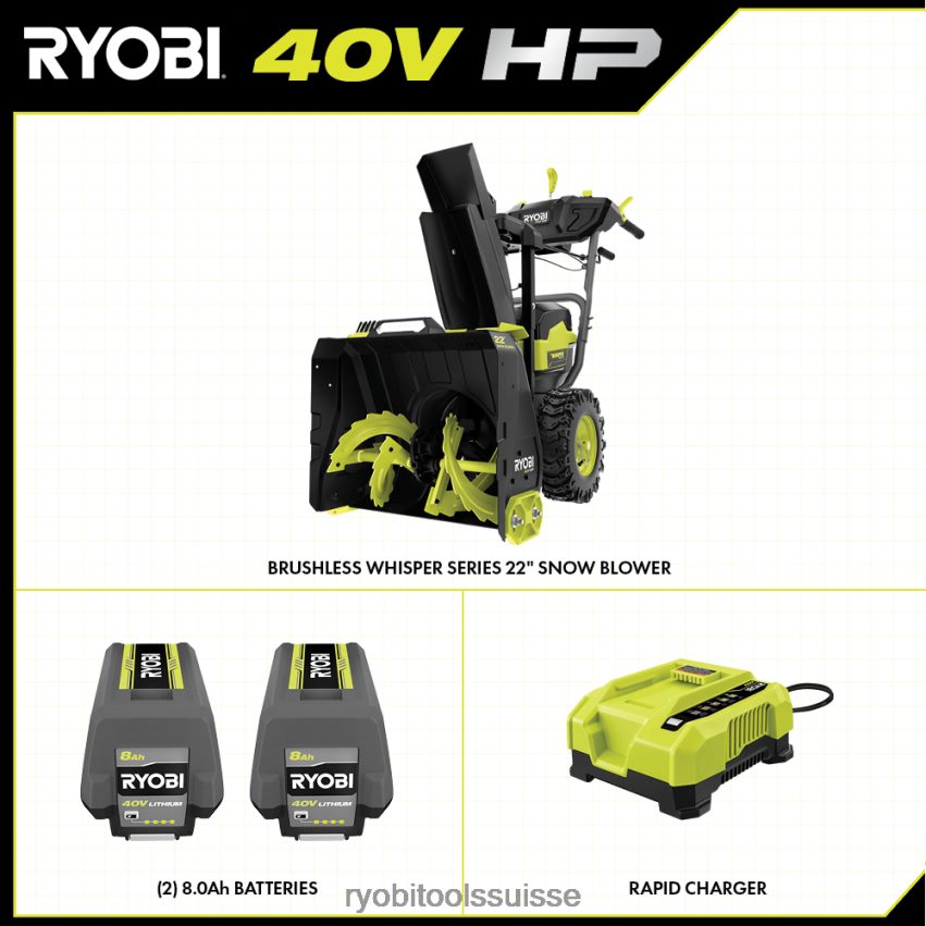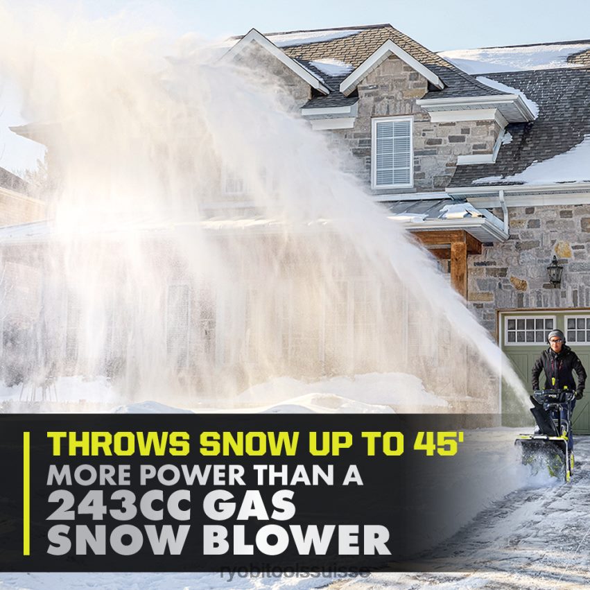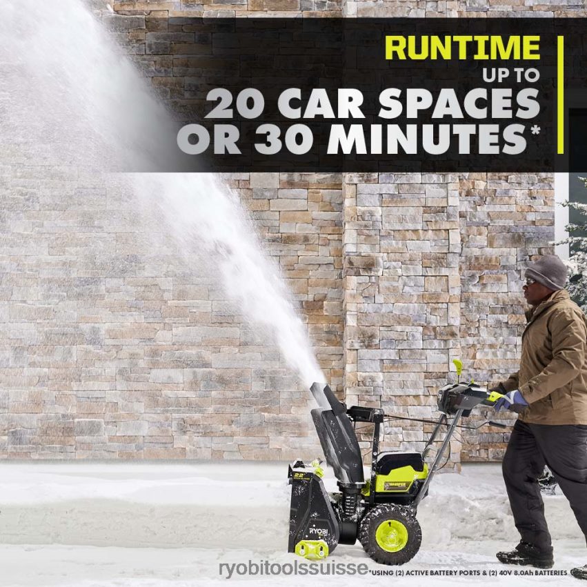 améliorez votre système Ryobi 40 V avec le kit de souffleuse à neige Ryobi 40 V HP sans balais 22”. La technologie 40 V HP combine un moteur sans balais, une électronique avancée et une technologie au lithium haute performance pour fournir plus de puissance qu’une souffleuse à neige à essence de 243 cm3, ce qui en fait un véritable remplacement du gaz. le moteur puissant projette la neige jusqu’à 45 pieds de distance et obtient jusqu’à 30 minutes d’autonomie en utilisant les (2) batteries 40 V 8 Ah incluses, suffisamment pour déneiger jusqu’à 20 places de voiture. cette souffleuse à neige de la série Whisper est conçue pour être 44 % plus silencieuse que l’essence, et encore plus silencieuse que les autres souffleuses à neige sans fil, vous permettant de travailler à tout moment de la journée sans déranger les autres. la largeur de déblaiement de 22 po et la profondeur de déblaiement de 18 po rendent cette souffleuse à neige idéale pour les grands trottoirs et allées. il dispose d’une vitesse variablesystème d’entraînement automoteur pour terminer le travail rapidement et sans effort. pour un contrôle et une durabilité accrus, la souffleuse à neige est également dotée d’une tarière en acier à vitesse variable et d’une goulotte directionnelle à 180 degrés pour diriger la direction de projection de la neige. Mieux encore, elle fait partie du système Ryobi 40 V où n’importe quelle batterie 40 V fonctionne avec n’importe quel produit 40 V. ce kit de souffleuse à neige sans balais 40 V HP de 22 po est couvert par la garantie du fabricant de 5 ans sur les outils Ryobi, la garantie du fabricant de 3 ans sur la batterie et comprend la souffleuse à neige sans balais ry408150 de 22 po, (2) batteries op4080a 40 V 8 Ah, un chargeur rapide 40 V. , outil de nettoyage, ensemble de poignée supérieure, ensemble de goulotte, ensemble de manivelle de goulotte et manuels de l’opérateur.