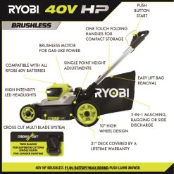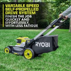 la tondeuse à gazon poussée sans fil multi-lames 21″ 40 V HP sans balais Ryobi offre la puissance de l’essence avec la commodité du sans fil. La tondeuse à gazon sans fil HP haut de gamme Le moteur fournit plus de puissance, une durée de fonctionnement plus longue et une durée de vie du moteur plus longue. Il démarre d’une simple pression sur un bouton, sans les tracas de l’essence, de l’huile ou de l’entretien. Cette tondeuse est idéale pour les jardins jusqu’à 1/2 acre, dotée de deux ports de batterie actifs et une batterie de 40 V 7,5 Ah qui fournit jusqu’à 50 minutes d’autonomie. Le système multi-lames à coupe croisée offre deux lames pour des performances de coupe supérieures ou une seule lame pour une autonomie plus longue. Le plateau durable de 21″ est léger. , résiste à la corrosion et est couvert par une garantie à vie. la tondeuse a une grande roue de 10″ de haut pour une maniabilité facile et le plateau est doté de 7 rouesRéglage de la hauteur à point unique pour sélectionner facilement la hauteur de votre herbe entre 1,5″ et 4″. avec les fonctions de tonte 3 en 1, vous pouvez choisir entre les fonctions d’ensachage, de mulching ou d’éjection latérale. un retrait facile du sac à un seul mouvement vous permet de vider rapidement et facilement le sac de ramassage et les poignées en aluminium à 1 touche se plient pour un rangement compact et vertical. cette tondeuse comprend un chargeur rapide de 40 V pour charger vos batteries 4 fois plus rapidement que le chargeur standard. cette tondeuse est fièrement fabriquée aux États-Unis avec des matériaux internationaux et bénéficie d’une garantie d’outil de 5 ans.
