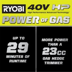 - La technologie 40 V HP fournit plus de puissance qu’un taille-haie à essence de 23 cc
