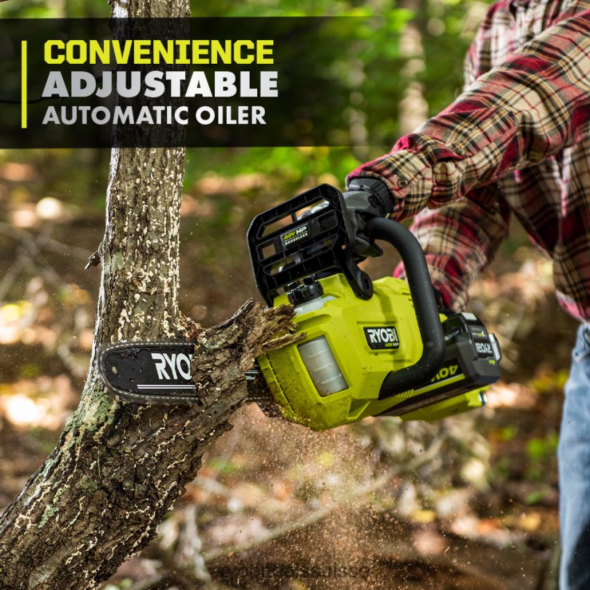 entrez dans le système Ryobi 40 V avec le kit de tronçonneuse sans balais de 14 pouces de 40 V HP. La technologie 40 V HP fournit plus de puissance qu’une tronçonneuse à essence de 37 cc, ce qui en fait une Véritable remplacement du gaz. Cette tronçonneuse est dotée d’un guide-chaîne et d’une chaîne de 14″ pour s’attaquer à des coupes jusqu’à 24″ et d’une chaîne complète haut de gamme qui offre une durée de fonctionnement plus longue et une coupe plus rapide, offrant jusqu’à 128 coupes par charge. La technologie 40 V HP combine un moteur sans balais. moteur, électronique avancée et technologie au lithium haute performance pour plus de puissance, d’autonomie et de durabilité, ce qui rend cette tronçonneuse parfaite pour vos besoins de travaux de jardinage. Cette tronçonneuse est dotée d’un graisseur automatique réglable pour maintenir la chaîne lubrifiée pour une durée de vie plus longue. Ajustez votre chaîne pour un contrôle contrôlé. , des coupes nettes à l’aide de l’outil de tension de chaîne avec on-brangement des outils de bord. Mieux encore, elle fait partie du système Ryobi 40 V où n’importe quelle batterie 40 V fonctionne avec n’importe quel produit 40 V. ce kit de tronçonneuse sans balais 40 V HP de 14 pouces est couvert par la garantie du fabricant de 5 ans sur les outils Ryobi, la garantie du fabricant de 3 ans sur la batterie et comprend une tronçonneuse sans balais Ry405010 de 40 V HP de 14 pouces, une batterie au lithium op40404 de 4 Ah, un chargeur op404 de 40 V, un fourreau et une combinaison. clé et manuels d’utilisation.