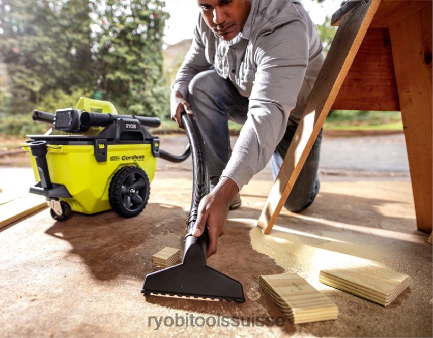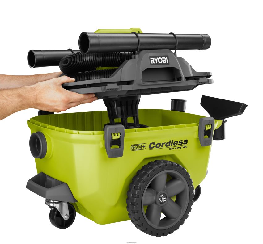 présentation du nouveau ryobi one+ 6 gal. aspirateur sec/humide. désormais, vous pouvez profiter des performances avec fil avec la commodité du sans fil. cet aspirateur a un puissant 80 cfm. la conception de roue multi-tailles sans pointe et la mobilité à 360 degrés maintiennent votre aspirateur équilibré lorsque vous roulez sur des cordons et des seuils. Le rangement intégré des accessoires contient facilement votre suceur plat, votre suceur de sol et vos rallonges, tandis que le support de tuyau offre une solution simple pour ranger votre tuyau lorsqu’il n’est pas utilisé. plusieurs poignées de transport permettent un transport facile, et le dessus amovible permet de vider la poussière, les débris et les liquides rapidement et sans gâchis. la conception compacte permet un stockage peu encombrant lorsqu’il n’est pas utilisé. Mieux encore, l’aspirateur eau/sec Ryobi One+ fait partie de la famille Ryobi One+ de plus de 100 outils.