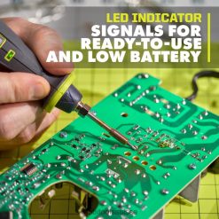 ryobi présente le kit de stylo à souder USB au lithium, offrant une précision de pointe fine avec une portabilité sans fil ultime. ce stylo à souder chauffe jusqu’à 900 degrés en moins de 2 minutes et est idéal pour l’assemblage de circuits imprimés, la fabrication de bijoux, la réparation d’équipements audio, et plus encore. le couvercle de la pointe éteint automatiquement le stylo à souder pour un rangement pratique. De plus, ce stylo à souder dispose d’un arrêt automatique après 10 minutes, vous offrant ainsi une tranquillité d’esprit. la lampe de travail intégrée illumine votre espace de travail, offrant une visibilité et une précision accrues. ce produit dispose d’un indicateur LED pour signaler lorsque l’outil chauffe, ainsi que pour indiquer l’état de charge de la batterie. Mieux encore, il fait partie du système d’outils au lithium USB Ryobi qui fournit une solution compacte, portable et rechargeable.ions pour une puissance et une productivité sans fil. Le kit de stylo à souder USB au lithium bénéficie de la garantie fabricant Ryobi de 2 ans et comprend une batterie USB au lithium 2 Ah, un câble USB, une pointe fine, un couvercle de pointe, une soudure de 0,031″ et des manuels d’utilisation.