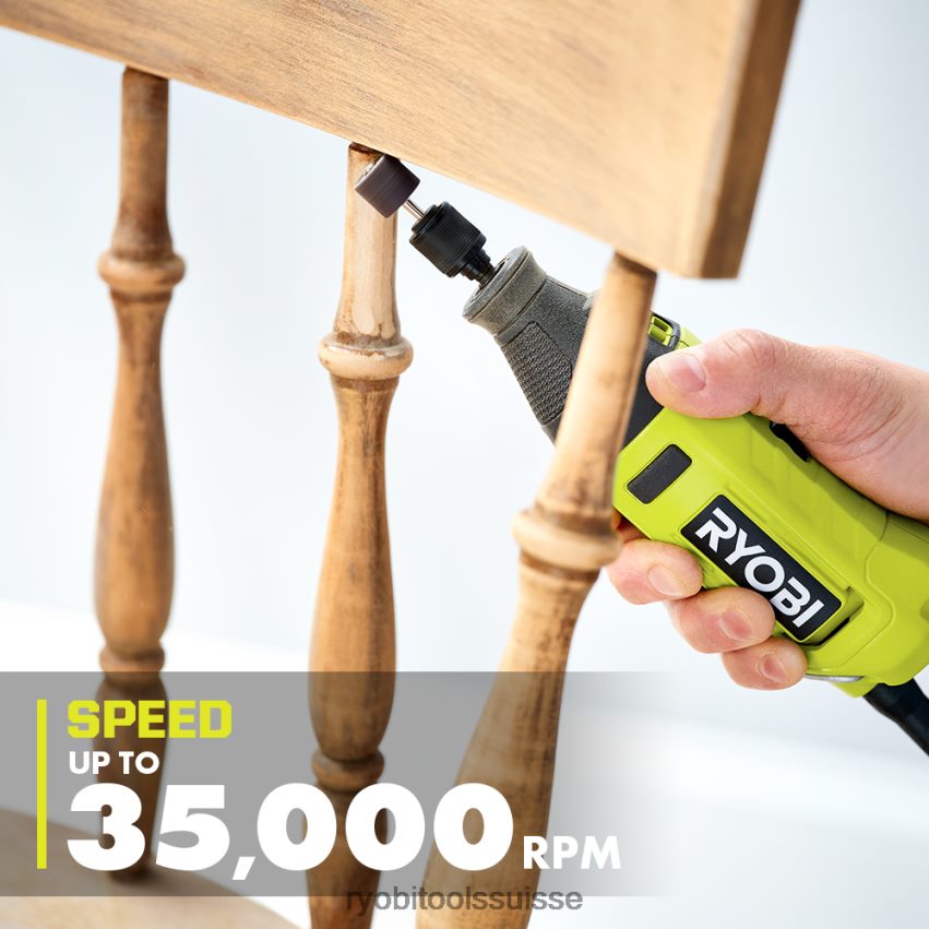 ryobi présente l’outil rotatif 1.2a. les 3 réglages de vitesse variable de l’outil rotatif offrent aux utilisateurs une puissance à la demande et un contrôle maximal avec 5 000, 15 000 et 35 000 tr/min nominaux. Doté de la nouvelle pince innovante à changement rapide avec des changements d’accessoires 4 fois plus rapides, vous pouvez désormais échanger les accessoires rapidement et facilement. cet outil rotatif est également livré avec un surmoulage confortable pour plus de contrôle dans n’importe quelle position. Bénéficiant de la garantie fabricant Ryobi de 3 ans, l’outil rotatif 1,2a comprend 15 accessoires de meulage/coupe/ponçage/polissage, 1 accessoire, une clé, un étui de rangement pour accessoires, un câble USB et un manuel d’utilisation.