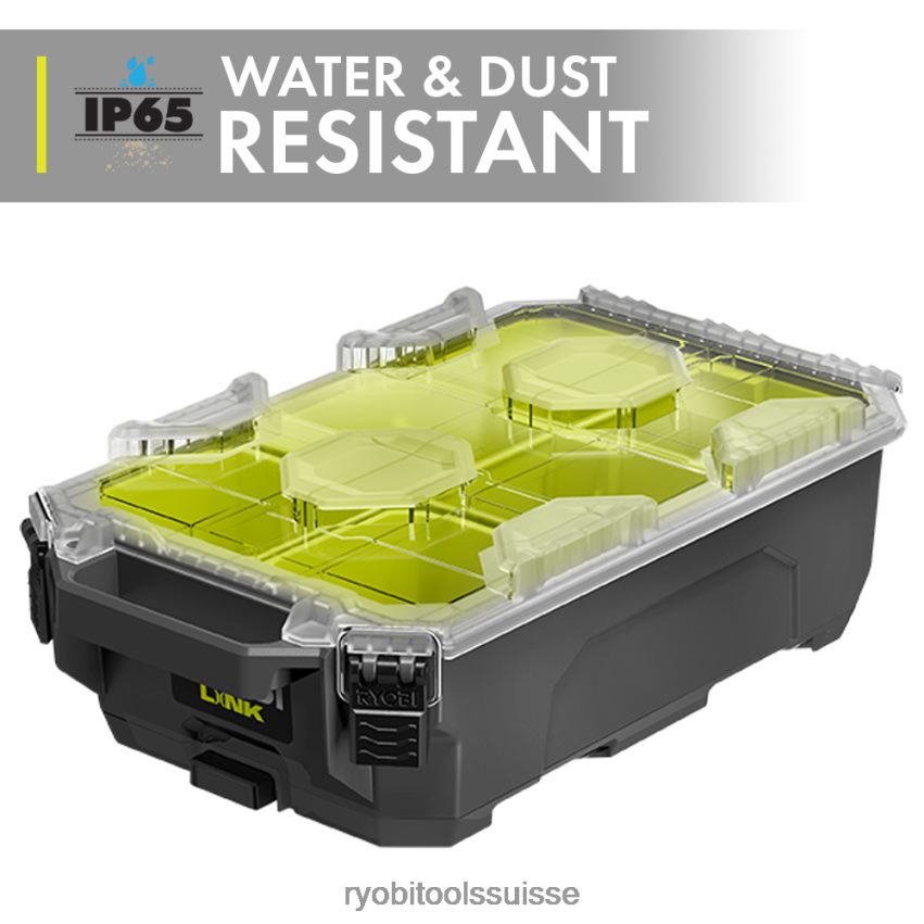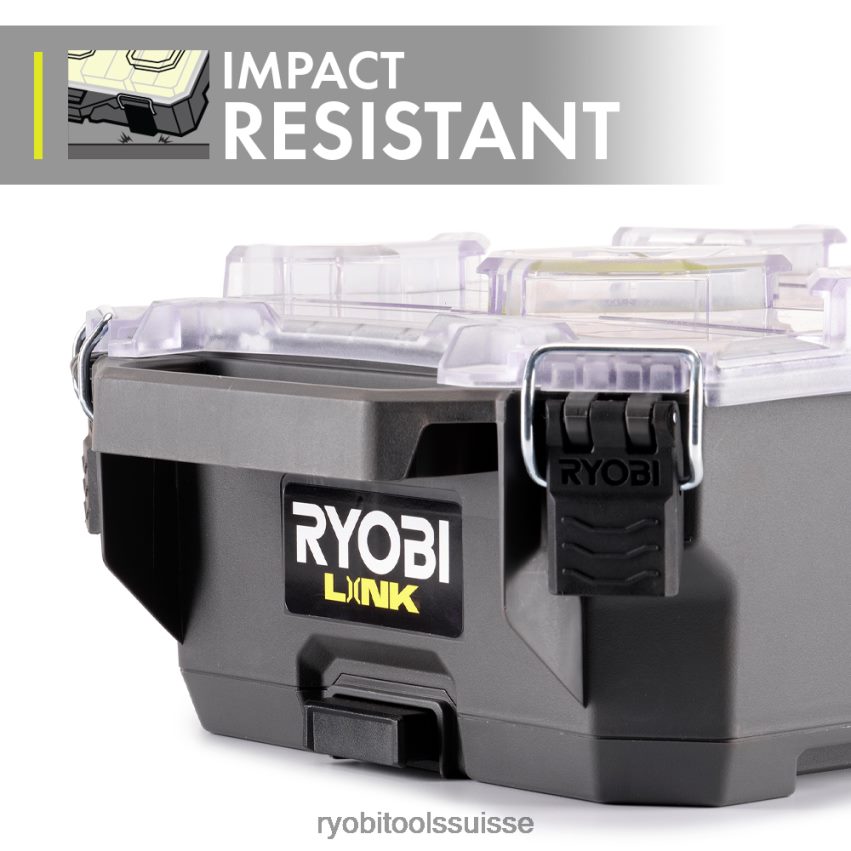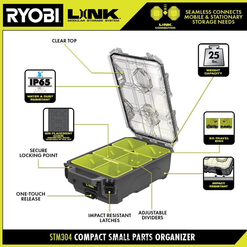 le système de stockage modulaire Ryobi Link révolutionne l’industrie du stockage, vous permettant d’organiser, d’accéder et de transporter votre vie. L’organisateur de petites pièces Ryobi Link Compact offre un stockage d’outils dans les situations les plus difficiles, entièrement équipé d’un matériau résistant aux chocs et d’une capacité de charge de 25 lb. sécurisez le stockage de vos outils portables avec l’indice IP65 qui protège vos articles de l’eau et de la poussière dans n’importe quel environnement. le compartiment intégré pour outils à main et les bacs de rangement sans voyage offrent une organisation maximale de stockage des outils Ryobi, gardant tout à sa place. identifiez rapidement ce qu’il y a à l’intérieur grâce au dessus transparent et sécurisez vos articles avec un point de verrouillage. c’est le complément parfait à votre gamme de boîtes à outils mobiles. Mieux encore, il fait partie de la gamme de systèmes de stockage modulaires Ryobi Link.des produits qui utilisent la même technologie de verrouillage pour connecter de manière transparente vos besoins de stockage mobiles et fixes. Possédez votre espace avec le système de stockage modulaire Ryobi Link.
